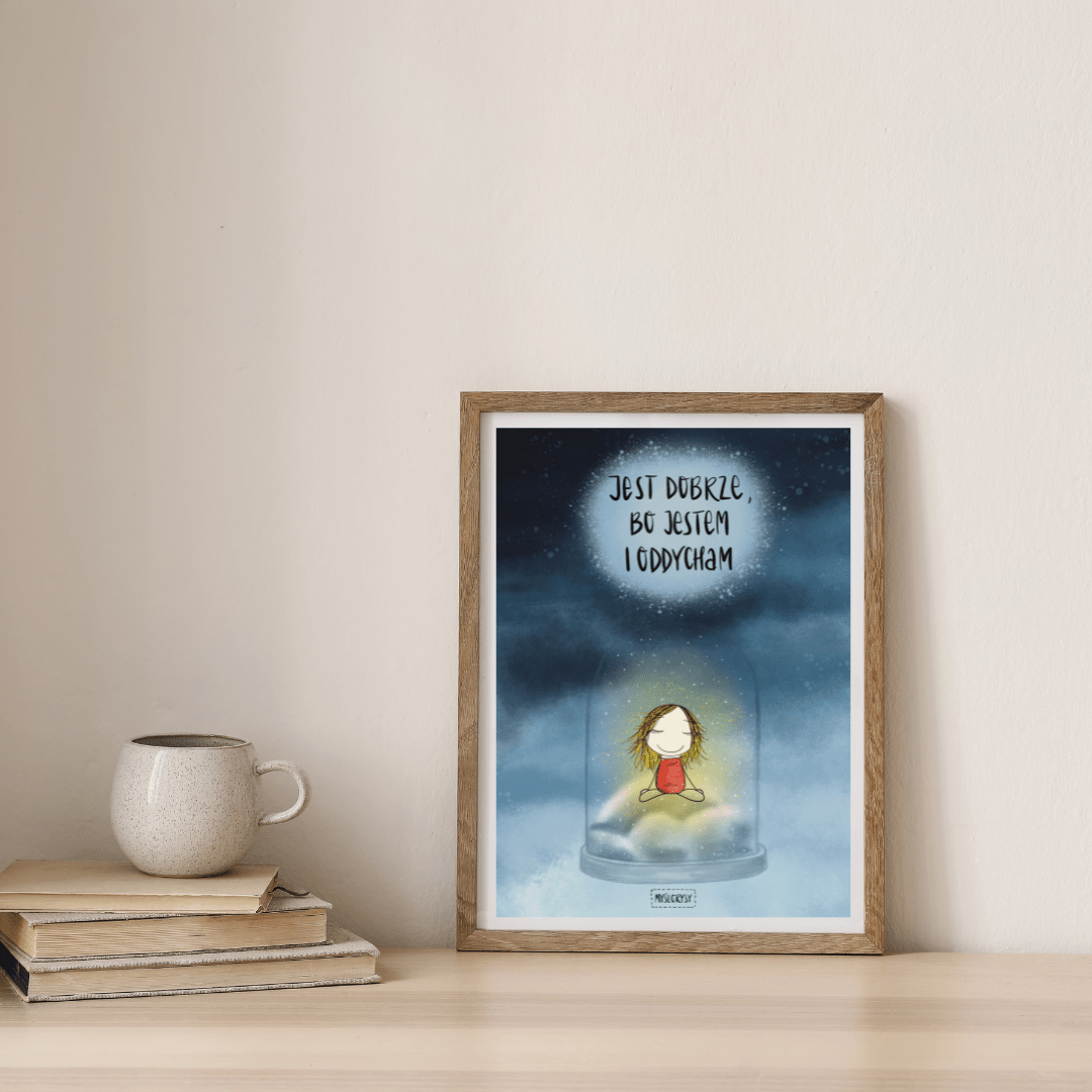 Plakat z grafiką JEST DOBRZE, BO JESTEM I ODDYCHAM